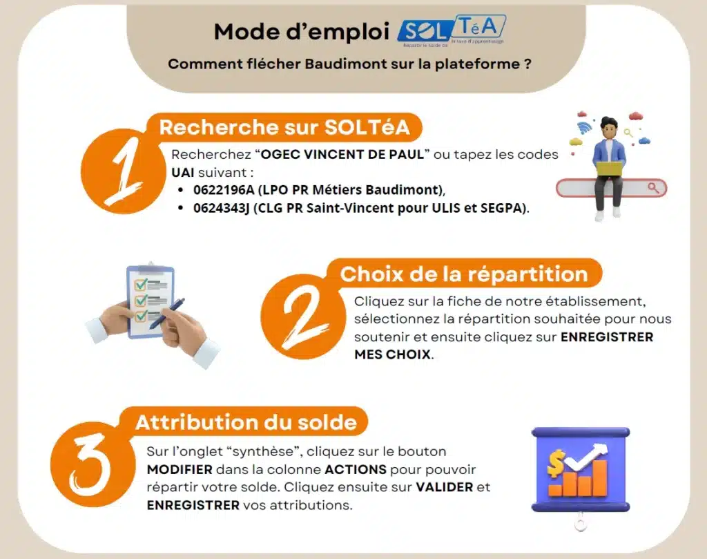 C’est par le biais de SOLTEA que vous pourrez déclarer officiellement les écoles que vous souhaitez voir bénéficier de votre 0.09 %